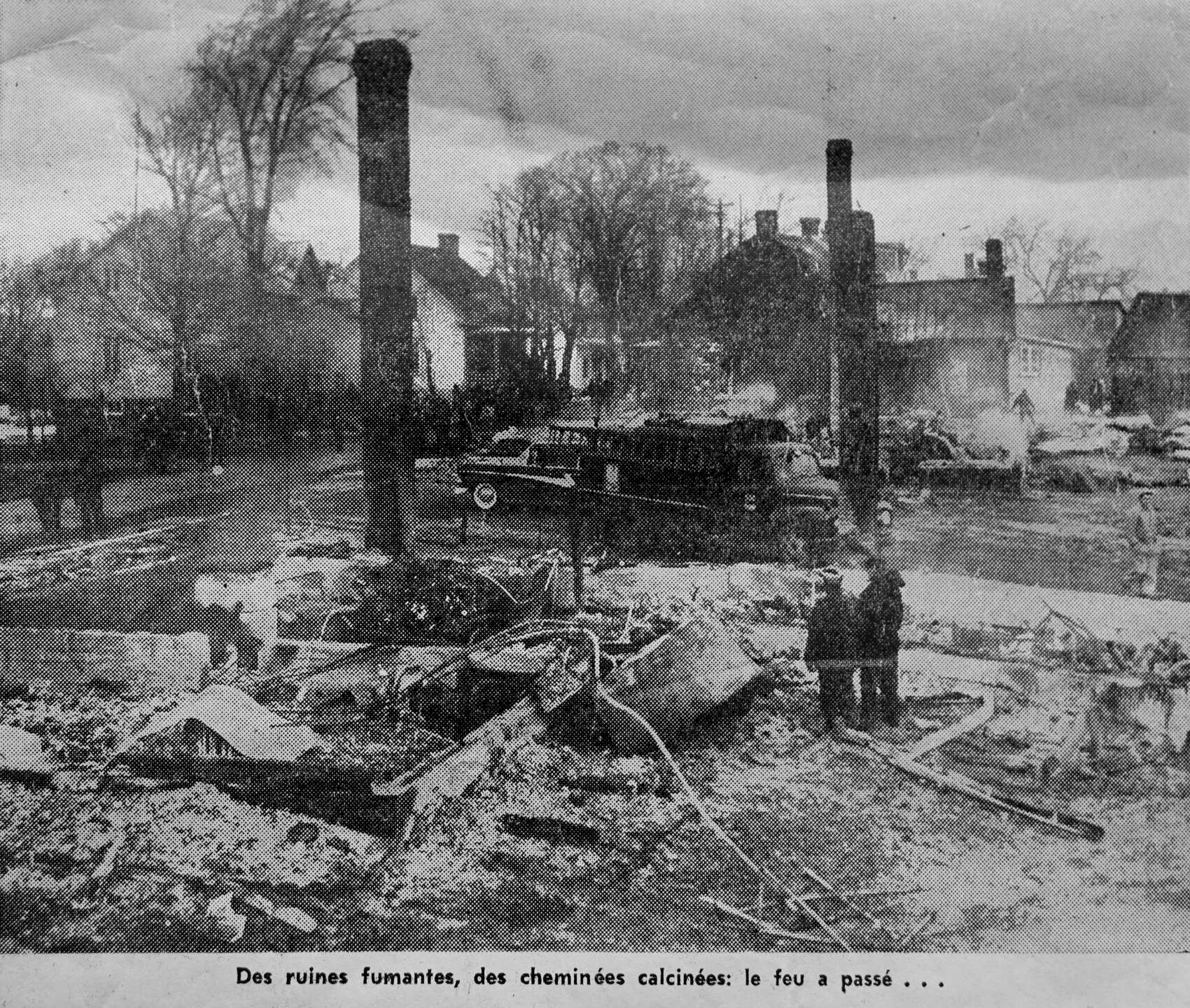 Le feu a détruit six immeubles. Une quincaillerie avec deux logements au premier étage, deux hôtels et trois résidences familiales, tous situés à l'entrée ouest du village. Cette catastrophe n'a fait aucun mort ni blessé, mais a laissé soixante personnes sans logis. À l'époque, les pertes ont été évaluées à plus de 200 000 $.