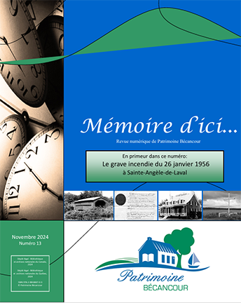 Mémoire d’ici est la revue informatisée publiée par Patrimoine Bécancour. Elle se veut un outil qui favorise la connaissance et l’information sur l’histoire et le patrimoine. Elle se veut aussi le reflet des passions, des passe-temps et du travail des membres de Patrimoine Bécancour. À cet égard, les membres sont invités à soumettre des textes au comité de rédaction pour faire connaître leurs travaux de recherche, qu’il s’agisse de recherches généalogiques, de collection de cartes postales ou d’autres objets significatifs, de l’histoire d’un ancêtre ou d’un personnage connu, d’une maison, d’un bâtiment, d’un village ou, tout simplement, des petites histoires de la vie courante. Vos travaux sont une richesse pour la communauté, n’hésitez pas à nous en faire part.